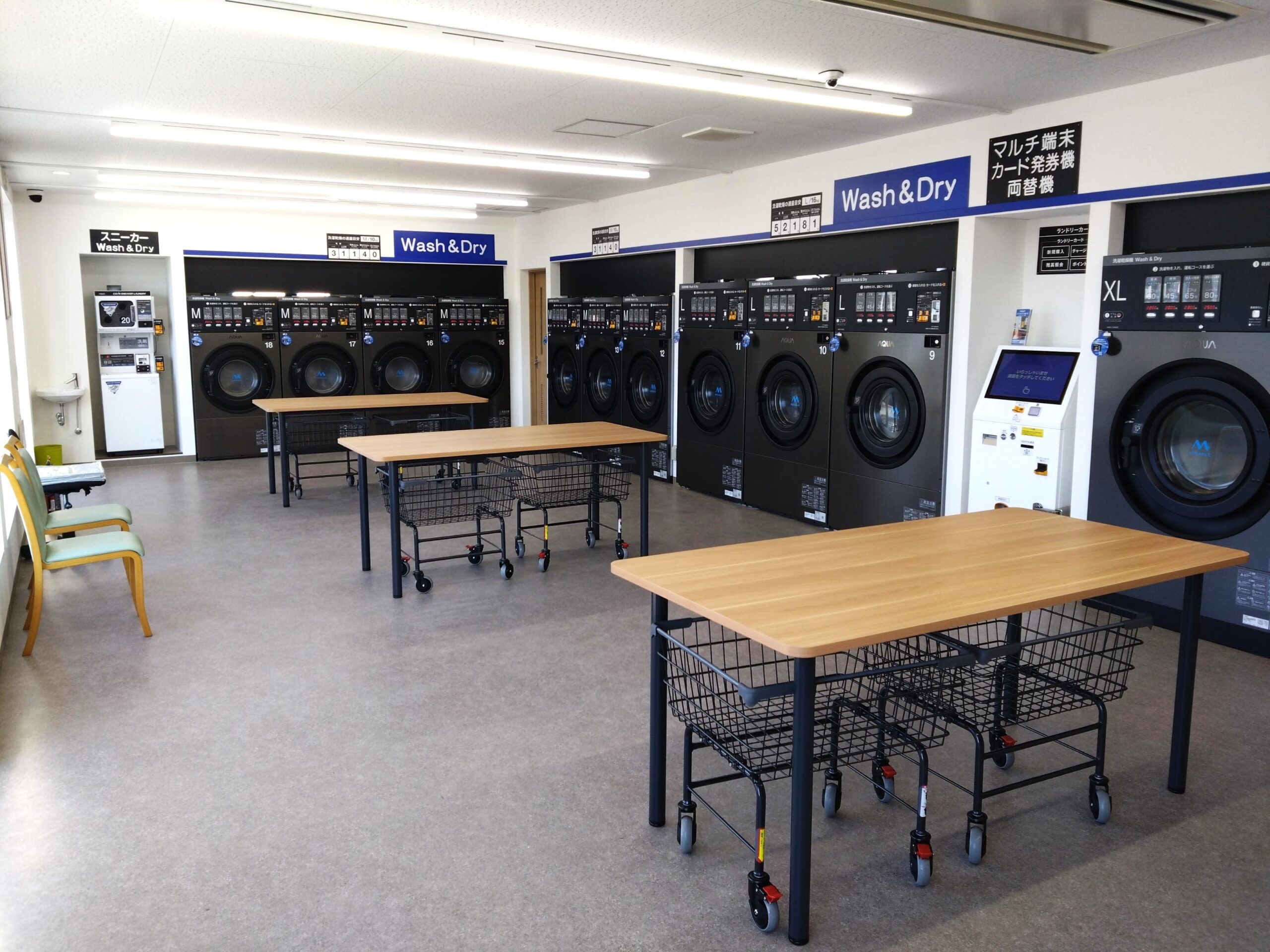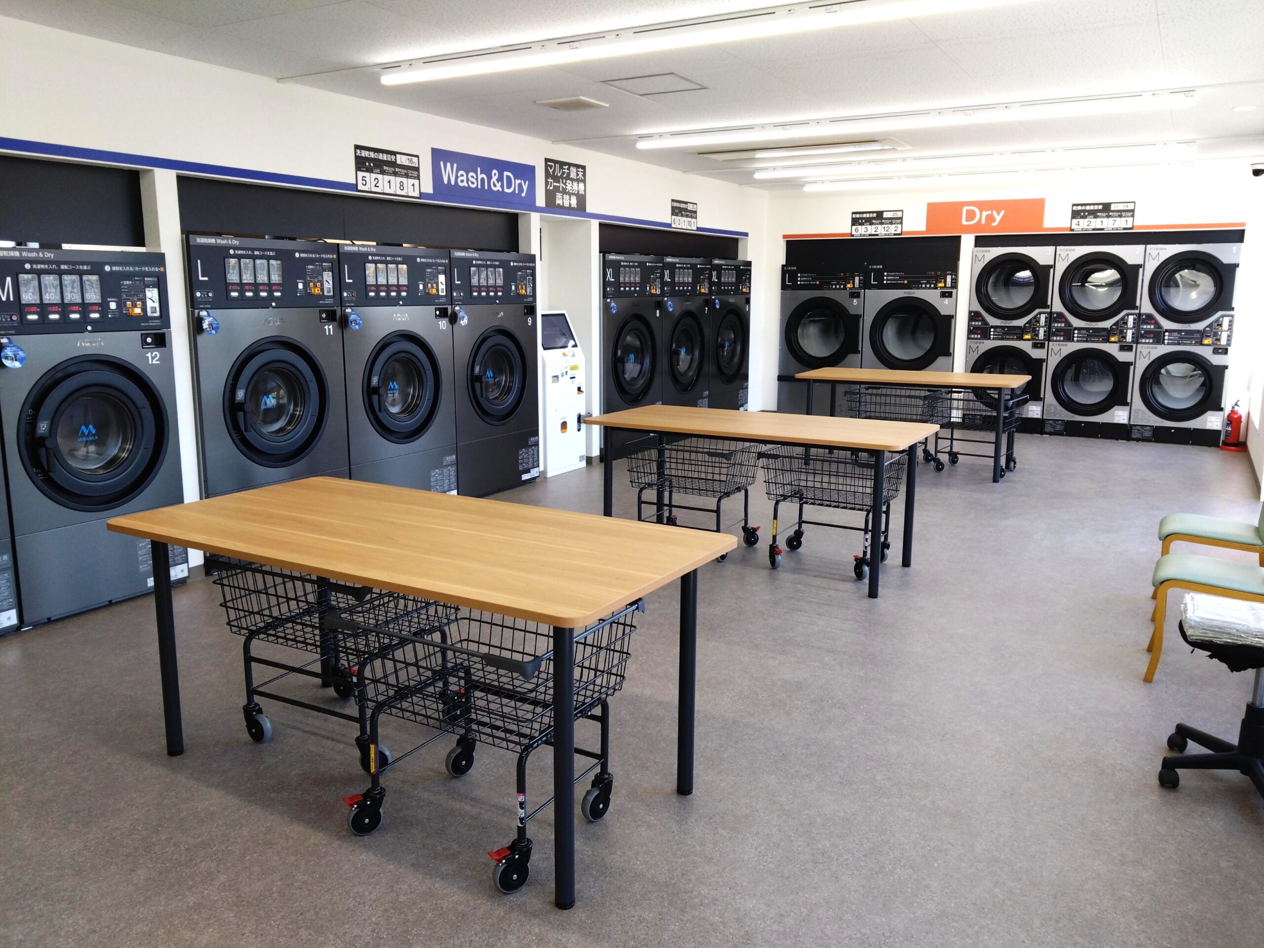導入台数:洗濯乾燥機34キロタイプ3台・洗濯乾燥機27キロタイプ3台・洗濯乾燥機17キロタイプ7台・2段式乾燥機14キロタイプ4台・乾燥機25キロタイプ2台・スニーカーウォッシャー1台・スニーカードライヤー1台・マルチ端末1台